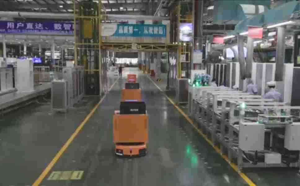 为车载冰箱物流配送打造的智能解决方案,,,包含产中物流通过潜伏举升AMR搬运至线边,,,,产后成品物流智能仓储,,,流程包含产中物流智能齐套入库,,线边安灯叫料AMR智能配送至线边,,,,成品入库、、、出库,,,,通过无人堆高车机器人,,智能仓储管理替代人工作业管理,,,实现更高存储、、、、更高效率、、、、更具柔性化的解决方案。。。